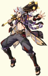 Элемент — Пиро, оружие — меч.