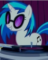 Единорог, самая популярная пони-диджей Эквестрии. Её знак отличия — нота чёрного цвета (две восьмые).