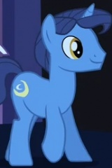 Аликорн, младшая сестра принцессы Селестии и главный антагонист первых двух эпизодов первого сезона как Найтмэр Мун. Луна была возвращена в обычную форму с помощью элементов гармонии и вернулась к правлению Эквестрией вместе со старшей сестрой.