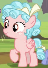 Пони, жеребёнок, одна из меткоискателей, в пятом сезоне получила свой знак отличия — ножницы. Задира, хулиганка, но со временем исправилась.