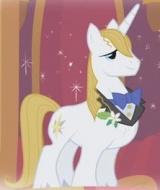 Единорог. Принц Голубая Кровь, племянник принцессы Селестии. Напыщенный, эгоистичный, самовлюблённый, легко использует других в своих целях, невзирая на их чувства, слишком чистоплотен и ест только королевскую еду.
