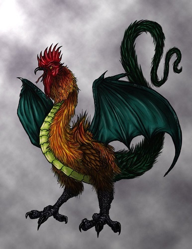 Кокатрис — волшебное существо, похожее на петуха, но с хвостом ящерицы.