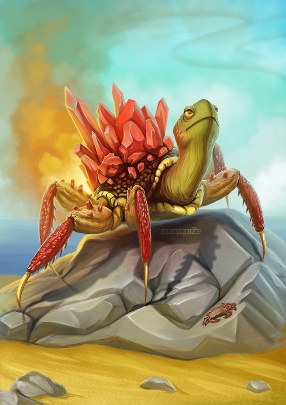 Огненный краб (или огнекраб; КММ: ХХХ). Несмотря на своё название, огненный краб напоминает скорее большую черепаху с панцирем, усыпанным драгоценными камнями. На родине огненного краба, на островах Фиджи, создан заповедник для охраны этого животного — не только от маглов, истребляющих его ради драгоценного панциря, но и от неразборчивых в средствах волшебников, которые делают из этих панцирей котлы, пользующиеся большим спросом. Впрочем, у огненного краба есть и собственный защитный механизм: при нападении он извергает пламя из задней части туловища. Огненные крабы служат предметом экспорта — их заводят в качестве домашних животных. Для торговли ими нужна специальная лицензия.