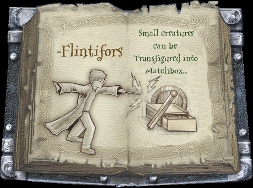 Флинтифорс — вербальная формула трансфигурационного заклинания, которое превращает небольшие существа в спичечный коробок. Цвет неизвестен, палочку нужно держать в левой руке.