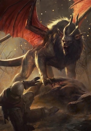 Мантихор, или мантикора, также известное как мардиахора — чудовище в литературной саге, также фигурирующее в игровой серии, гигантский лев с перепончатыми крыльями и хвостом скорпиона. Мантикоры невероятно редки, и встретить такого монстра для охотника на чудовищ — большая удача, хотя и большой риск: мантикоры крайне опасны, смертоносны и агрессивны и считаются добычей высшей категории.
