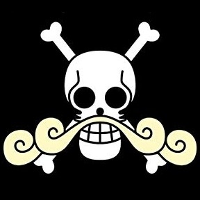 Команда легендарного бывшего Короля Пиратов, Гол Д. Роджера. Весёлый роджер Пиратов Роджера — это обычный череп с перекрещенными позади него костями, с усами, похожими на усы капитана команды. В отличие от весёлого роджера Пиратов Белоуса, эти усы закручиваются на концах.