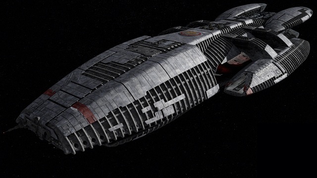 «Галактика» была построена в начале Первой Сайлонской Войны, более пятидесяти лет назад. Это был первый из двенадцати (по числу колоний) звездных крейсеров такого типа, который дал название всей линейке. Корабль входил в состав боевой группы Колониального флота BSG-75 — именно это обозначение присуствует на всех эмблемах и шевронах.