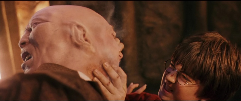 По приказу Хозяина Квиррелл попытался вначале схватить, потом убить Гарри, но у него ничего не получалось: защитная магия Лили Поттер не позволяла обидчику даже коснуться её сына. Каждое прикосновение к Гарри Квиррелла вызывало у того жуткий ожог. Пытаясь противостоять Квиринусу и Волдеморту, Гарри раз за разом хватал профессора за руки, за лицо. В конце концов, Гарри от боли в шраме потерял сознание, но и Квиррелл от полученных ожогов умер. Волдеморт покинул тело Квиррелла и исчез в неизвестном направлении.
