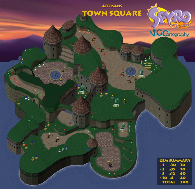 Маленький городок на острове в центре озера. Мэр города — Нильс, брат-близнец Нестора. В городе есть пара фонтанов и множество башен. Стены зданий и скал увивает плющ. Над городом красуется фиолетовое небо с густыми облаками, освещаемыми оранжевым светом заходящего солнца, что позволяет сделать вывод о том, что мир погружён в вечный вечер.