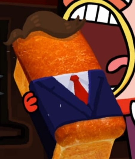 Хлеб, оформленный в стиле джентльмена — имеет стильную прическу и одет в офисном стиле (рубашка, галстук, пиджак).