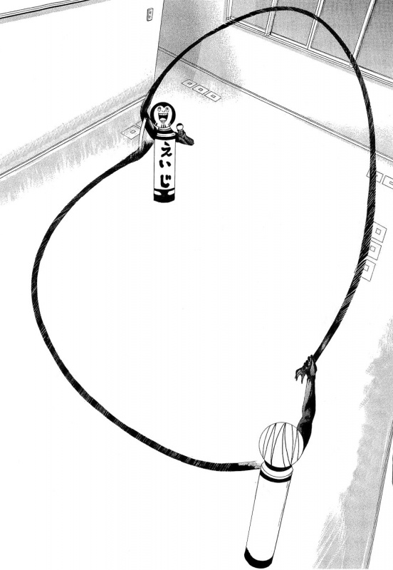 В манге вместо скакалки используется длинная рука одного из кокеши, которую крутит второй. Участникам требуется прыгнуть сотню раз, причем всем вместе. Если "скакалка" задевает участника, то отсекает задетую часть тела.