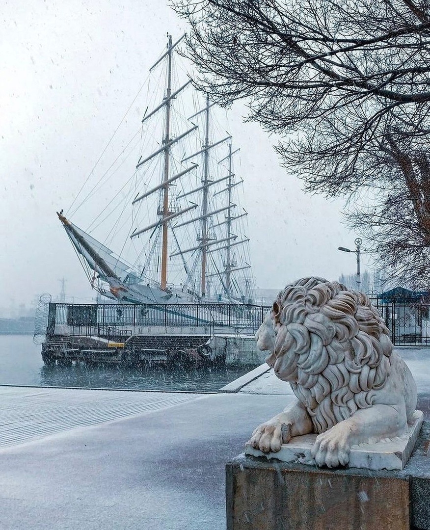 У нас все еще лежит снег (спойлер - завтра он уже растает), и эти два дня были настоящей новогодней сказкой. Графская пристань с мраморным снежным львом 27 |