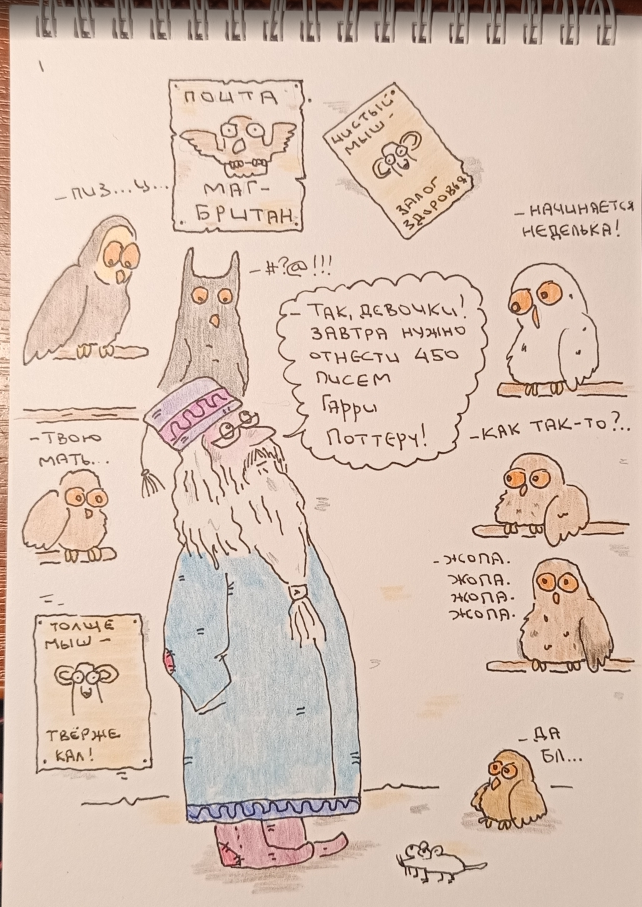 — Драко — белок, — еле слышно выдохнул Гарри. — Точнее хорек. — Он — мёд! — торжественно объявила Нарцисса, выпрямляясь во весь рост. — Какой? — опешил Волдеморт. — Липовый, вестимо, эвона как. Все взгляды внезапно сошлись на Беллатрисе. Та в ужасе закрыла рот губами. — Ее покусал Хагрид! — завопил Макнейр, отшатываясь. — Оно передается! Передается укусно-слюняны́м путем! — Такого пути не бывает, — брезгливо поправил его Малфой-старший. — Половым оно передается, эвона как! Волдеморт начал что-то подозревать, но его отношения с паранойей в последнее время стали доверительными, так что он решил не усугублять. — Гарри Поттер — мёд! — провозгласил он и поднял руки к небу. — Так давайте же станцуем и споём об этом! Заиграла индийская музыка. Пожиратели пустились впляс. И даже мертвый Поттер нет-нет да и выделывал какие-то па. Окружающую их дымку никто, казалось, не замечал. Как и две фигуры, стоящие чуть поодаль. — Я шпионил ради вас, лгал ради вас, подвергал себя смертельной опасности ради вас. И думал, что делаю всё это для того, чтобы сохранить жизнь... — Йоу! — изобразил козу пальцами Дамблдор. Снейп, казалось, едва сдержался, чтобы не выругаться. — Какое, нахрен, йоу, Альбус? Ты совсем уже сбрендил?! — Не, — односложно ответил тот. — ЧТО "НЕ"? — заорал взбешённый таким ответом Снейп. — Не. Рифмуется. Мальчик. Мой, — улыбаясь, по словам произнес Дамблдор. — Если ты пытаешься читать рэп, то он не рифмуется. А если пытаешься донести до меня что-то, то начни с коньяка. — О, Мерлин, дай мне сил, что задумано успеть, ни о чем не пожалеть... — начал бормотать себе под нос успокоительную мантру Снейп. — О! А вот теперь лучше, — хмыкнул Дамблдор, почесывая заусенцем под бородой. — Эх, Северус-Северус, в поэты-песенники тебе надо, а не вот это вот все... — В дурку ВАМ НАДО, а не вот это вот все, — Снейп уже почти успокоился и почти не кричал. — Вы лучше скажите, когда этот балаган закончится?! — Кто его знает, — философски пожал плечами Дамблдор. — У меня нет ни малейшего понятия ни сколько пророчеств хранилось в этом зале, ни какого качества они были. Я знаю лишь одно: пока все они не исполнятся хотя бы виртуально, магия зала никого отсюда не выустит... Снейп неверяще покачал головой и перевел взгляд на арену амфитеатра. Беллатрикс как раз посвящала Невилла в рыцари скалкой, а Волдеморт пересаживал шерсть с хвоста Сириуса себе на грудь. — И вы хотите сказать, что кто-то это предсказал?! — открыл в себе новую октаву Снейп — Знаешь ли, Северус, — глубокомысленно изрёк Дамблдор. — Пророчества изрекать — не мешки ворочать. А насчёт коньяка ты все-таки подумай. Нам ещё долго тут сидеть... Свернуть сообщение - Показать полностью