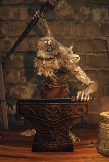 Кузнец, заключён в крепости Круглого Стола и занимается кузнечным делом для местных обитателей, не может умереть. Работа помогает ему забыть о той, кого он страшится.