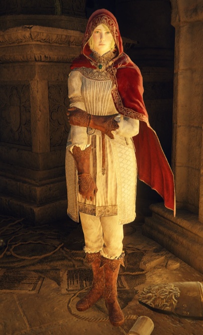 Погасшая, прибывшая в эти земли из-за моря: из-за этого Годрик Сторукий и заинтересовался ей и её товарищами. Все ее соратники были убиты и приращены. В крепости Круглого стола мастер-кузнец Хью обучил ее работе с духами.
