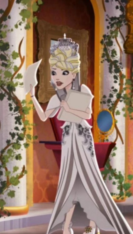 Бывшая правительница Страны Чудес, возможно, правила вместе с Червонной Королевой, пока не сбежала в королевство Белоснежки после того, как в Страну Чудес вторглась Злая Королева. После того, как Рэйвен сняла проклятье, на историческую родину так и не вернулась. В данный момент преподаёт Принцессологию в Школе Долго и Счастливо. Белая Королева всегда просит называть её Миссис Её Величество Белая Королева, некоторые ученики не понимают её прихотей, но так, как она персонаж из Страны Чудес, то относятся к её немного необычной натуре более спокойно.