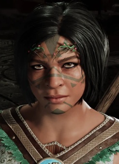 Молодая девушка-дварф, целительница в Друидской роще, помощница и ученица Хальсина. Для нее одинаково важны любые живые существа. В первую очередь заботится о своих соплеменниках и о Роще и, если потребуется, ради них готова пойти на всё.