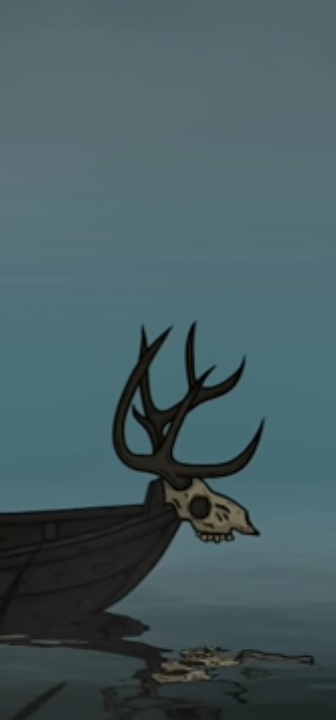 Лодка без вёсел, заколдованная, как и река. Чтобы переправится, нужно принести ей что-то в дар. Мёртвое тело подойдёт.