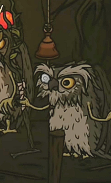 Сова с красным камнем на посохе. Встречает гостей и настойчиво приглашает поспать. Вполне честно говорит, что они нуждаются в людях, как те — в воздухе, так что желает насладиться присутствием Ларса.