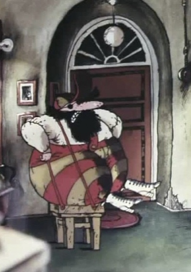 Немец, контрабандист. По рассказам одет во все черное. В экранизациях и играх от студии "Пилот" носит очки, полосатый комбинезон, рубашку и кепку, а также длинную черную бороду (вероятно, накладную). К спине привязана табуретка. Говорит с немецким акцентом. Являлся похитителем, а первоначально — хозяином слона Балдахина. Вооружен автоматом с воздушными шариками, надутыми гелием.