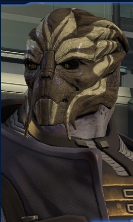 Генерал турианцев в отставке, ветеран нескольких военных кампаний против кроганов, во время войны со Жнецами занимался чёрным рынком оружия на Цитадели. Влюблен в Ша’иру, после ссоры с ней начал топить горе в алкоголе.
