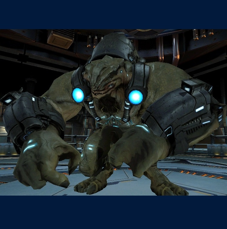 Модифицированный подопытный кроган, старейший испытуемый Директора, его созданием занимался "Цербер" на станции Барн. За всё время на станции он претерпел серьёзные генетические и кибернетические модификации. Он в несколько раз больше, чем нормальный кроган, со значительными изменениями, внесенными касательно его размера передних конечностей и общей мышечной массы. Также был усовершенствован кибернетическими энергетическими рукавицами и интегрированными генераторами щитов. X1 не может говорить. Неизвестно, является ли он подконтрольным "Церберу" благодаря одурманиванию, или он просто сошел с ума после экспериментов, через которые прошёл.