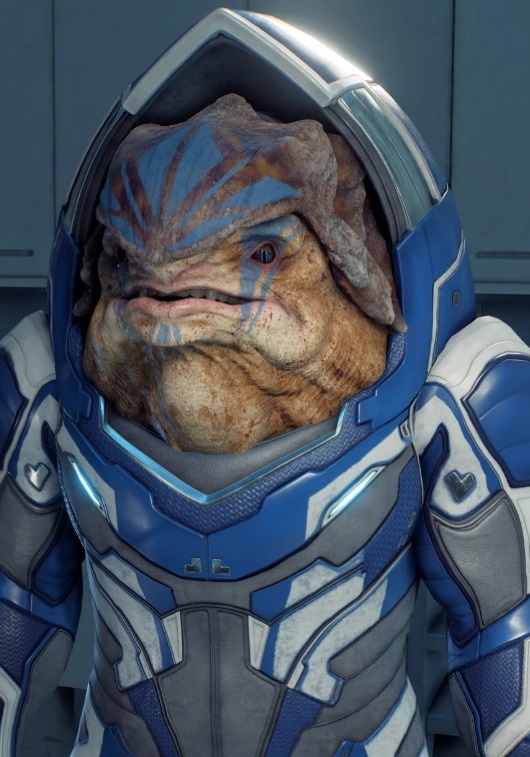 Женщина-кроган из клана Накмор, инженер, в её задачи входит поддержание всех систем станции в рабочем состоянии.