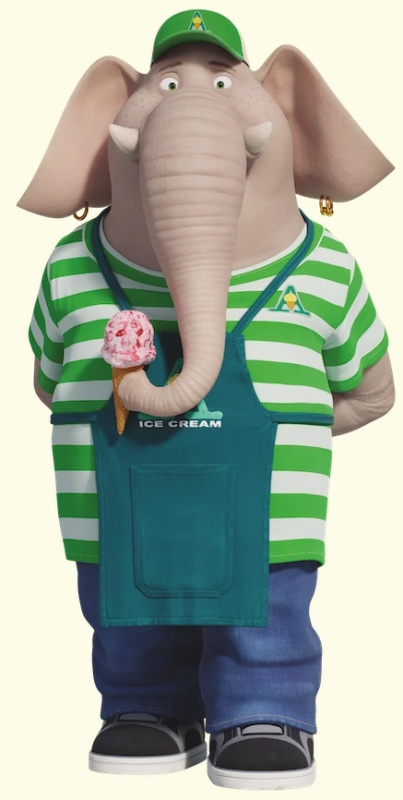 Стеснительный молодой слон. Продавец мороженого, в которого влюбляется Мина.