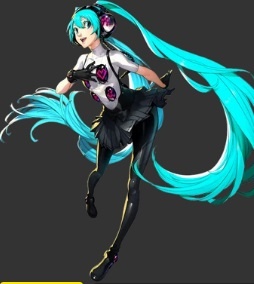Персонаж игры Persona 4: Dancing All Night, девочка-подросток с очень длинными волосами акварельного цвета, завязанными в косички, которые доходят ей до щиколоток, и акварельными глазами.