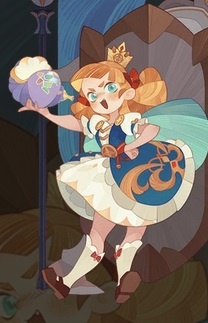 Девочка-маг из фракции "Носители света". На поле боя ее охраняют надежные королевские гвардейцы, которых она может лечить и бафить.