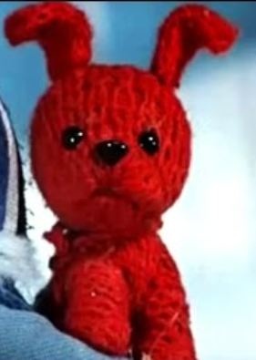 Собачка, связанная из красных ниток. Появилась случайно, превратившись из красной варежки, когда девочка играла и представляла, что это щенок.