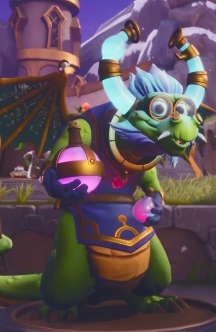 Элдрид — зеленый дракон с оранжевой чешуйчатой нижней частью живота. Он алхимик. У Элдрина голубые волосы и специфические защитные очки, к которым прикрепленны трубки, напоминающими рога с лазурной жидкостью внутри. У него в ноздрях пробки, он носит синий фартук, а также золотой ожерелье с красным кристаллом. Он носит бутылки с зельями и держит на хвосте деревянную ложку. На его крыльях написаны расчеты.