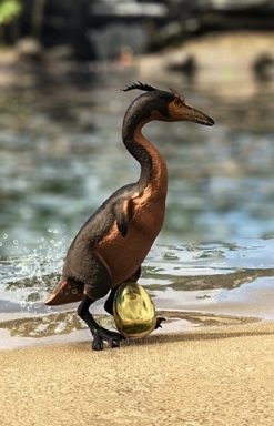 Рыбоядная птица, встречается на реках и озерах острова. Не представляет опасности для наземных существ, так как его ноги слишком коротки для бега, но по воде на удивление быстро плавает и с легкостью охотится на рыбу и других мелких водных существ.