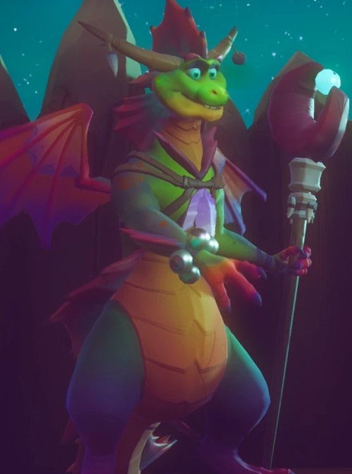 Айзек — долговязый дракон, похожий на ящерицу, вооруженный посохом с клешней краба наверху, сжимающим глазное яблоко. Он носит браслеты с четырьмя глазными яблоками на правом запястье, на груди у него прикреплены фиолетовые перья, а на рогах висят небольшие украшения. Из его тела торчат плавники, что создает иллюзию того, что он носит одежду.