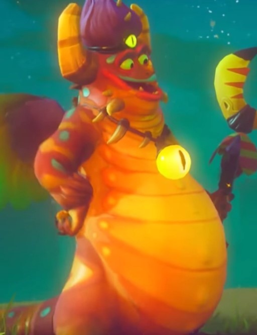 Джед — красный дракон со желтыми рогами и оранжевым брюшком. У Джеда большие пернатые крылья с зелеными кончиками. Он также носит шаманский наряд с украшениями в форме глаз на шляпе и ожерелье и посохом с клювом тукана наверху.