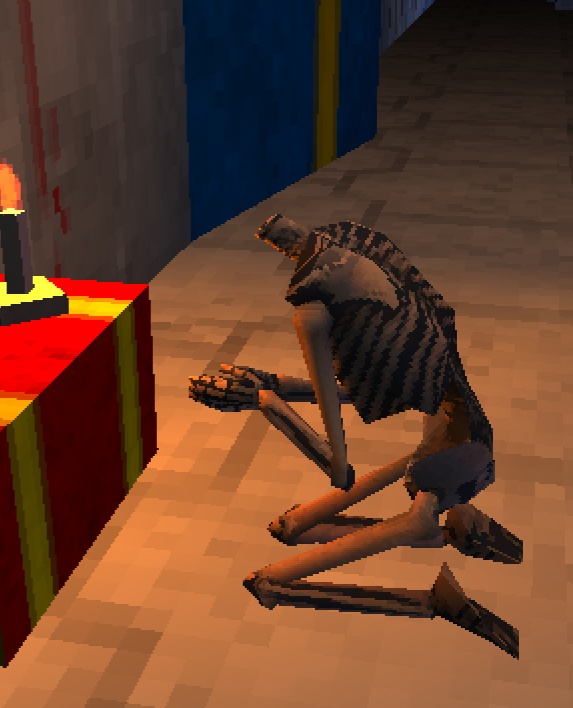 Безгроловый скелет, молящийся на алтаре. В своем послании обращается к Гавриилу.