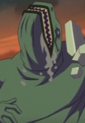 Большой гуманоидный ящер-ЭВО с кристаллическими шипами, растущими из тела, с четырьмя короткими ногами и с кристаллической левой рукой. Его голова также сильно искривлена и повернута на 90 градусов, не сгибается в шее. Он может выпускать кристаллы из левой руки или вырастить из неё щит.