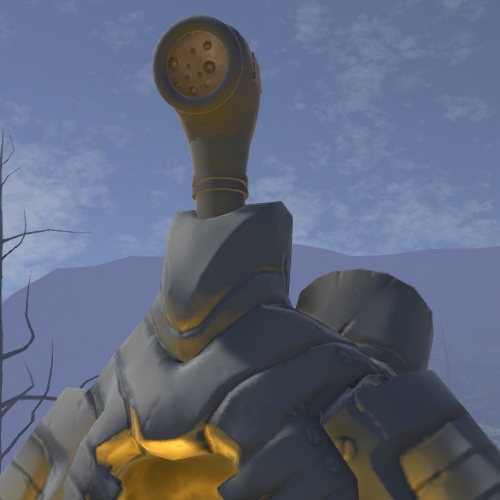 Большой человекоподобный робот с голосовой трубой вместо головы. Структура его металлического корпуса содержит два типа реакторов на уровне плеч сзади и отверстие в сердце тела, из которого исходит свет.