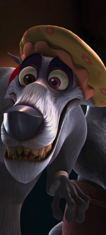Волк (Три Поросенка) Один из трех волков, призванных Фридой, являющийся основным командиром армии плохих парней. Очевидно, что он из сказки о трех поросятах.