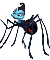 Паук-черная вдова с материнской натурой. Она в основном является материнской фигурой для синего жука-носорога Дима, с которым она делит одно действие, а также для молодых муравьев колонии.
