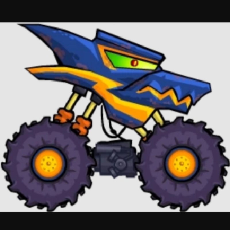 Синий грузовик-монстр с пластинами зубов, похожими на зубы черепахи.