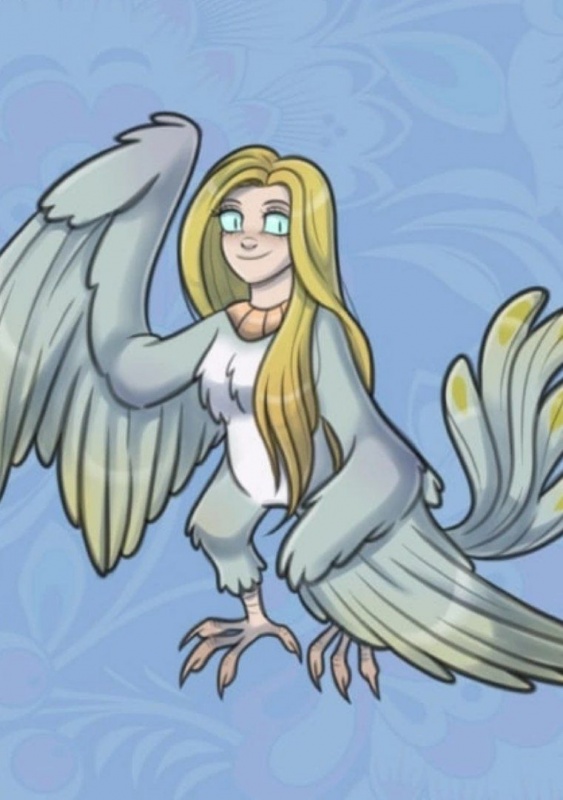 Сказочная птица, ветреная блондинка с легким характером и прекрасным голосом. Груз знаний о грядущем совсем ее не волнует. Она приносит счастье, хотят его или нет. Время от времени ее очень тянет к морю.