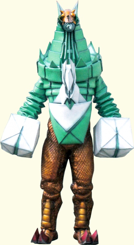 Может действовать как на суше, так и в море. Мгновенно находит свою добычу, раздельно перемещая свои широко расставленные глаза влево и вправо. Он также способен прорезать что угодно своими острыми плавниками и может выпустить из своих челюстей залп красных энергетических клыков.