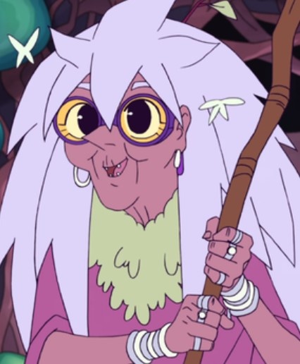 Персонаж мультсериала "Ши-Ра и Непобедимые принцессы". Таинственная старуха, живущая в Шепчущих лесах. Была знакома с предыдущей Ши-ра, Марой.