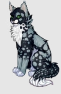 Чёрная кошка с голубыми пятнами, белой грудкой и зелёными глазами. Являлась оруженосцем племени Теней, исправно обучалась на воителя. Была утоплена недоброжелателями и попала в Сумрачный лес. На данный момент обитает в Звёздном племени, хочет переродиться в племя Теней.