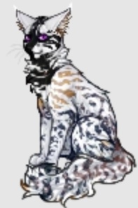 Крапчатая бело-чёрно-бежево-синяя кошка с фиолетовыми глазами. Родилась в Речном племени, откуда изгналась в племя Ветра. Оттуда перешла в одиночки и, наконец, осела в племени Теней.