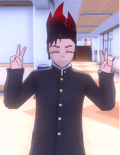 Он носит стандартную школьную форму с красной банданой, повязанной вокруг лба, если игрок не настроит ее по своему усмотрению. Если его задача не будет выполнена, он не наденет бандану.