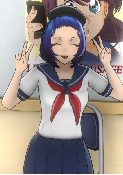 Она носит стандартную школьную форму с черным беретом, если игрок не настроит ее по своему усмотрению.
