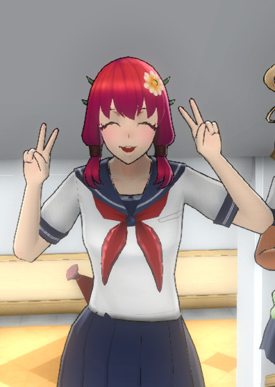 Она носит стандартную школьную форму с плюмерией на левой стороне головы, если только игрок не изменил её внешний вид. Она приносит в школу жёлтую лейку, если только Клуб садоводов не распустили.