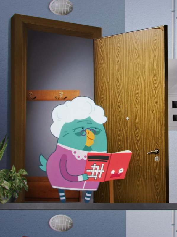 Старушка — соседка Чирикиных. Любит разгадывать кроссворды.